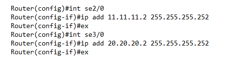Setelah itu beri IP Address pada setiap interface router yang terhubung dengan kabel DTE dan mengkonfigurasi EIGRP nya