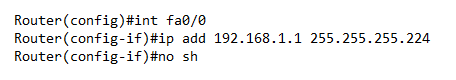 Pergi ke router Cabang 1, masuk ke bagian CLI, kita akan memberikan IP Address kepada interface yang terhubung pada switch.
