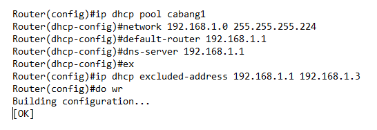 Setelah itu kita akan melakukan dynamic rooting menggunakan dhcp pool agar komputer secara otomatis mendapatkan IP tanpa harus mengkonfigurasi satu persatu.