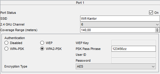 Untuk Access point tidak perlu di konfigurasi apapun, cukup sambungkan ke switch, lalu masuk ke pengaturan Access point, amankan access point menggunakan WPA2-PSK dan di beri sandi.